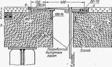 Рис. 11. Водонепроницаемый шов расширения при сопряжении вертикально подвижной части с вертикально неподвижной (устоем):