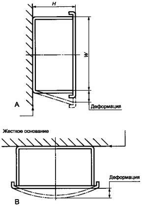 10.3.4 После испытания на образцах не должно быть признаков раздробления и трещин, видимых при нормальном или скорректированном зрении без применения специальных приборов. На внутренних перегородках допускаются трещины, которые не ухудшают условия электробезопасности и дальнейшей эксплуатации коробов. 10.4 Испытание на продольный прогиб 10.4.1 Испытанию подвергают три образца прямых секций. Образцы устанавливают на опоры, симметрично удаленные от центра испытуемого образца на максимальное расстояние, рекомендуемое изготовителем, при этом длина образца должна быть равна удвоенному расстоянию между опорами, и закрепляют их. 10.4.2 Испытание проводят при температуре (20 ± 5)°С, а для секций из изоляционного или композитного материала также при температуре (60 ± 2)°С. 10.4.3