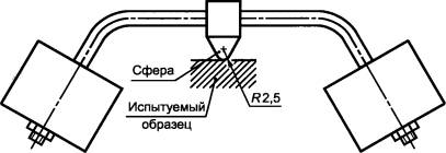 Рисунок 1 - Установка для испытания на теплостойкость Если невозможно вырезать из оболочки один фрагмент толщиной 2 мм, то вырезают 4 фрагмента оболочки и складывают их слоями так, чтобы получился испытуемый образец минимальной толщиной 2,5 мм. Примечание - Толщина образцов, подвергаемых испытанию, должна быть не менее 2,5 мм, для того чтобы избежать ударов шарика ниже пластины. Поверхность испытуемой части оболочки размещают горизонтально, а затем стальным шариком диаметром 5 мм надавливают на ее поверхность с силой 20 Н. Испытание проводят в камере тепла при температуре (70 ± 2) °С. Через 1 ч шарик снимают с образца, который затем охлаждают в течение 10 с до температуры окружающей среды путем погружения в холодную воду. Измеряют диаметр вмятины от действия шарика, который должен быть не более 2 мм. 9.8.3 Испытание на стойкость к аномальному нагреву и огню Испытание проводят в соответствии с требованиями МЭК 60695-2-10 [6] и МЭК 60695-2-11 [7]. Если размеры оболочки не совместимы с размерами испытательной установки, то испытанию подвергают характерный образец, толщина которого равна минимальной толщине оболочки. В случае сомнений испытанию подвергают два дополнительных образца. До начала испытания образец выдерживают в течение 24 ч при температуре окружающей среды от 15 °С до 35 °С и относительной влажности воздуха от 35 % до 45 %. Установку размещают в темном помещении без сквозняков для обеспечения видимости возникающего при испытании пламени. До начала испытаний проводят калибровку термопары по разделу 6 МЭК 60695-2-10 [6]. Испытание проводят по разделу 8 МЭК 60695-2-10 [6] и разделу 10 МЭК 60695-2-11 [7]. После каждого испытания необходимо очищать конец нагреваемой проволоки от обгоревших остатков изоляционного материала, например с помощью щетки. Температура конца нагретой проволоки должна быть следующей: - для частей, удерживающих токоведущие части, - (960 ± 15) °С; - для частей, предназначенных для установки в стены с нишами, - (850 ± 15) °С; - для прочих частей, в том числе частей, не предназначенных для удерживания токоведущих частей, включая выводы заземления и части, предназначенные для встраивания в несгораемые стены, - (650 ±15) °С. Длительность испытания - (30 ± 1) с. При проведении испытания нагретой проволокой и следующие 30 с наблюдают за образцом, его частями и слоем папиросной бумаги, находящейся под ними. Момент воспламенения образца и момент затухания пламени в процессе испытания записывают. Образец считают выдержавшим испытание нагретой проволокой, если: - отсутствует видимое пламя или устойчивое свечение или - пламя и свечение образца погасают в течение 30 с после снятия нагретой проволоки. В процессе испытания не должно быть воспламенения папиросной бумаги и выгорания сосновой доски. Примечание - Чем выше температура, тем короче период погасания пламени, поэтому значения температуры и времени, применяемые при испытании, должны быть согласованы между изготовителем и потребителем. 9.9 Проверка электрической прочности изоляцииПроверке подвергают оболочки, изготовленные из изоляционных материалов. 9.9.1 Подготовка к испытанию Оболочки помещают в термоизолированную камеру влажности, в которой установлены температура (40 ± 2) °С и относительная влажность воздуха от 91 % до 95 %, и выдерживают в камере в течение 2 дней (48 ч). В большинстве случаев оболочки доводят до заданной т