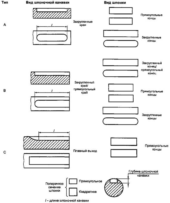 c) шпоночная канавка в насаживаемом элементе может отличаться по длине от шпонки вала; при этом в собранный ротор не вносится дополнительный дисбаланс и не требуется использование шпонок ступенчатой формы;