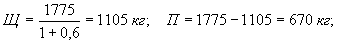 = 1000 - 341 = Общий весовой расход щебня и песка П + Щ = Vп+щγп+щ = 659×2,67 = 1760 кг, где