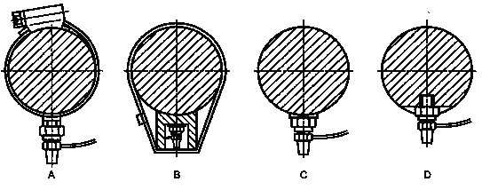 приклеиванием датчика к плоской поверхности (см. рисунок - предварительной подготовкой плоской поверхности, высверливанием отверстия и нарезанием резьбы для установки датчика (см. рисунок 1D).