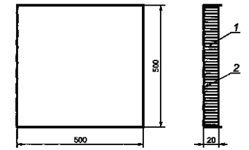 1 - вспененный заполнитель (неопрен); 2 - стальной ящик с толстыми стенками Рисунок 4 - Поглотитель энергии (стальной ящик с неопреновым заполнителем) Обычно такие условия достигаются приложением силы нажатия FA в ньютонах, численно равной увеличенной в 10 раз массе машины, выраженной в килограммах. Установленное значение силы нажатия должно поддерживаться неизменным в пределах ± 10 %. Пример - Для машины