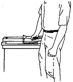 изготовителя. Для пневматических машин воздух подают по шлангу длиной не менее Оператор прикладывает к ручной машине усилие нажатия, необходимое для ее стабильной и плавной работы с номинальными рабочими характеристиками, определенными изготовителем. В процессе испытаний оператор должен совершать рабочую операцию в комфортных условиях, выпрямившись или почти выпрямившись, производя резанье в горизонтальной плоскости (см. рисунок 3).