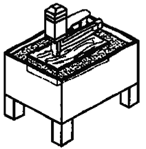 Рисунок 3 - Рабочая поза оператора 7.2. Объект обработки В процессе измерений ручная машина должна работать с крепежными средствами максимального размера, допустимыми для данной машины. Объект обработки представляет собой сосновый брус без сучков с прямым расположением волокон. Средняя плотность материала должна быть (0,45 ± 3) г/см3, средняя влажность - (12 ± 3) %. Толщина бруса должна превышать не менее чем в 1,2 раза длину самого большого крепежного элемента, используемого при испытаниях. Место вбивания крепежного элемента должно находиться на расстоянии не менее Объект обработки располагают на испытательном стенде, который представляет собой ящик, наполненный сухим речным песком, так, чтобы волокна бруса были расположены горизонтально, а его