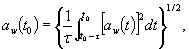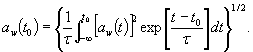 где aw(t) - мгновенное значение корректированного виброускорения, м/с2 (рад/с2); t - постоянная времени, с; t - время (переменная интегрирования), с; t0 - время наблюдения (мгновенное время), с. 1) От английских слов «maximum transient vibration value». Формула (2) соответствует процедуре линейного усреднения, которое может быть аппроксимировано экспоненциальным усреднением (см. ГОСТ ИСО 8041):