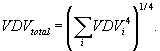 где aw(t) - мгновенное значение корректированного виброускорения, м/с2 (рад/с2); Т - период измерений, с (см. 6.1). Примечание - Если воздействие вибрации наблюдают на двух или нескольких временных интервалах i, для каждого из которых характерен свой уровень вибрации, доза вибрации для всего воздействия в целом VDVtotal может быть рассчитана через сумму четвертых степеней доз вибрации на каждом интервале по формуле