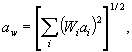 где Wi - весовой коэффициент для i-й третьоктавной полосы частот по таблицам 3 и 4; аi - среднеквадратичное значение виброускорения в i-й третьоктавной полосе частот, м/с2 (рад/с2). В случае проведения измерений в узких полосах частот, включая измерения с использованием метода быстрого преобразования Фурье (БПФ) (см. ГОСТ ИСО 8041), корректированное виброускорение aw м/с2 (рад/с2), получают по формуле