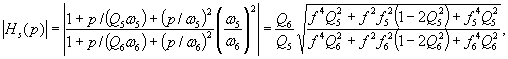 Частоты f1 - f6 и коэффициенты добротности Q4 – Q6 являются параметрами передаточных функций, определяющих общий вид частотной коррекции (относительно виброускорения, рассматриваемого в качестве входной величины). Данные передаточные функции являются произведениями нескольких сомножителей, которые перечислены ниже.