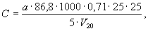 Концентрацию солей фтористоводородной кислоты в воздухе (по фтор-иону) вычисляют по формуле :
