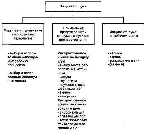Рисунок 1 - Основные меры защиты от шума Для минимизации шума на рабочем месте следует заранее рассмотреть все средства снижения шума (см. рисунок 2).