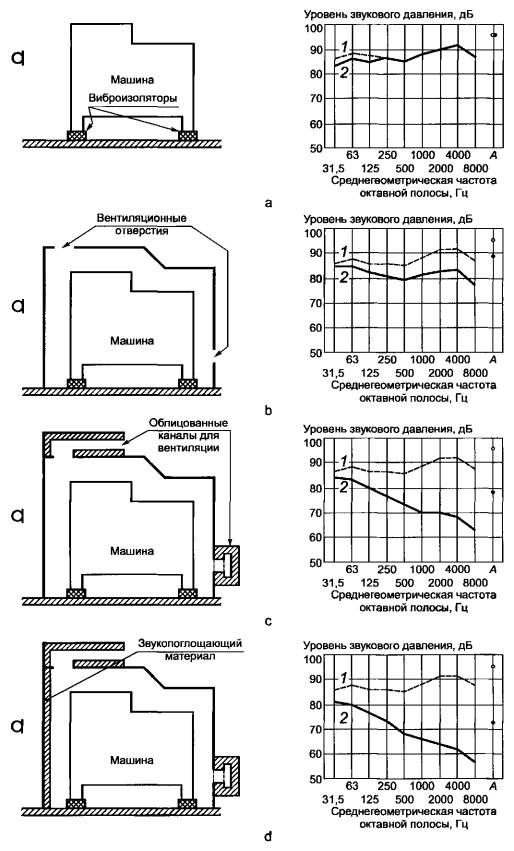 Ключевые слова: защита от шума, шум на рабочем месте, кожухи, звукоизолирующие кабины, акустические экраны, эффективность снижения шума, акустическая обработка поверхностей, глушители шума, воздушный шум, структурный шум