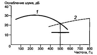 В этой области частот ослабление шума может достигать 20 дБ для постоянных (стационарных) шумов и 10 дБ для непостоянных (изменяющихся во времени) шумов.