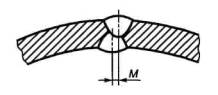с - Несовпадение оси М валиков швов (ДСФ трубы) Рисунок 2 - Возможные отклонения размеров сварных швов 7.6.5.1.2 Для сварных труб типов ДСФ и КОС максимальное радиальное смещение (Оо, и Оi рисунок 2b) кромок рулонного или листового проката не должно превышать значений, приведенных в таблице 13. Таблица 13 - Максимальное допустимое радиальное смещение кромок рулонного или листового проката для труб, изготовленных дуговой сваркой под флюсом В миллиметрах