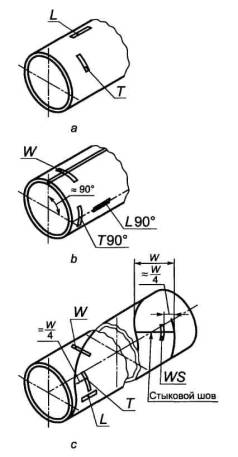b) не разрешается для калибровки оборудования использовать внутренние и внешние продольные надрезы, которые находятся по оси сварного шва;