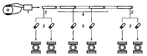 1 - сварка; 2 - конец рулона; 3 - отрезанные концы, два образца; 4 - остановка сварки; 5 - два образца, по одному с каждой стороны от места остановки сварки Рисунок 4 - Схема отбора образцов для испытания на сплющивание (см. также 8.2.3.6.1). Таблица 18 - Вид, количество и расположение образцов, отбираемых для механических испытаний