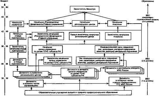 Примечания: 1. Переход с одного вида службы на другой осуществляется в соответствии с действующим законодательством. 2. Продвижения по службе достоин каждый сотрудник МЧС России, имеющий навыки управленческой деятельности, получивший соответствующую подготовку (в соответствии с квалификационными требованиями по должности), соблюдающий законодательство Российской Федерации во всех вопросах служебной деятельности. 3. предпочтение при зачислении в резерв отдается сотрудникам, имеющим: разносторонний опыт службы на руководящих должностях в органах управления, поисково-спасательных формированиях, пожарно-спасательных формированиях, воинских частях; ученую степень; образование по специальностям «Государственное и муниципальное управление», «Юриспруденция». Рис. 1. Типовая схема формирования кадрового резерва руководящего состава МЧС России Соответственно внесение предложений по рациональному использованию и расстановке кадров, в том числе сотрудников, перемещаемых на другую должность, входит в круг полномочий психолога, посредством которых он реализует свою профессиональную деятельность. В то же время психологическая информация пока недостаточно и не всегда правильно используется при решении кадровых вопросов. С одной стороны, это связано с тем, что многие правовые и организационные вопросы деятельности психологической службы не урегулированы, недооценивается роль и место психологического обеспечения в работе с личным составом, с другой - из-за слабой разработанности научно-методического обеспечения функций психолога в сфере работы с кадровым резервом. Недостаточно развитой в организационно-правовом отношении остается и сама система продвижения по службе в системе МЧС России. Развитие нормативной правовой базы, регулирующей вопросы прохождения службы, сегодня не может происходить без учета возможностей психологической науки и достижений современной практической психологии, а на деле это происходит. Так, в двух документах, регламентирующих работу психологической службы, говорится об участии психолога в аттестации [6, 8], а в Положении о порядке проведения аттестации сотрудников Государственной противопожарной службы, изданном в 2003 году и утвержденном приказом МЧС России [9], роль психолога не отражена. При этом следует отметить приказ [10], изданный в целях повышения уровня профессиональной подготовки, изучения деловых и личных качеств кандидатов для назначения на должности начальников территориальных органов ГУ МЧС России, первых заместителей начальников ГУ МЧС России. В этом приказе утверждены планы проведения учебно-методического сбора с кандидатами для назначения на должности начальников (заместителей) главных управлений МЧС России по субъектам Российской Федерации и рассмотрения их кандидатур на заседании Центральной аттестационной комиссии МЧС России. В перечень проводимых мероприятий вошли и мероприятия по изучению личных качеств кандидатов. Для осуществления этой работы привлекались специалисты ЦЭПП, АГЗ и АГПС МЧС России. В настоящее время основными направлениями правовой реализации психологического обеспечения работы с руководящими кадрами являются: • отбор (подбор) и расстановка руководящих кадров; • включение в квалификационные характеристики руководящего состава професс