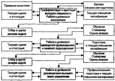 Рис. 2. Схема-модель рациональной организации кадрового движения На должности, предусмотренные структурой кадрового резерва, рекомендуется подобрать не менее двух работников, в том числе готовых к назначению на должность в ближайший период («ближний резерв») и для выдвижения на перспективу («дальний резерв»). Лица, зачисленные в резерв на перспективу, как правило, не закрепляются как резерв на конкретные должности. При определении параметров численного состава резерва кадров можно оперировать следующими факторами: необходимым темпом осуществления реорганизации; особенностями и спецификой конкретного органа управления, подразделения; потребностями структурных подразделений в руководящих кадрах, как на ближайший период, так и на отдаленную перспективу; возрастной структурой кадров; требуемой степенью ротации и увольнения; оценкой конкретных результатов служебно-профессиональной деятельности; склонностью кандидата к той работе, где в полной мере могли бы раскрыться его способности и потенциальные возможности; требуемым уровнем способностей для действий в условиях риска, возникающих в сфере их профессиональной деятельности; структурой источников пополнения кадрового потенциала; предложениями структурных подразделений и рекомендациями аттестационных комиссий. Формирование резерва кадров Есть все основания полагать, что формирование резерва кадров является самостоятельной разновидностью процессуальной деятельности, осуществляемой в федеральном и региональных органах МЧС России. Оно представляет собой самостоятельную административную процедуру, которая регламентирована Методическими рекомендациями [3], что с точки зрения правового регулирования является пока еще недостаточным. Формирование резерва кадров предполагает, что в основе этой деятельности лежат следующие принципы: • планирование работы по подготовке резерва; • открытость и гласность при подборе и зачислении сотрудников в резерв кадров; • персональная ответственность руководителей системы МЧС России, которые имеют право назначения сотрудников на соответствующие должности руководящего состава, за выдвижение сотрудника в резерв кадров и его подготовку; • согласие сотрудника на включение его в резерв кадров; • доверие и уважение к сотрудникам, объективность оценки их качеств и результатов служебной деятельности. Практика показывает, что резерв кадров формируется исключительно с учетом руководящих должностей. Однако такой подход не соответствует потребностям аппарата управления. Думается, при формировании резерва кадров должны быть учены не только должности руководителей всех уровней, но и должности, не относящиеся к руководящим (главный специалист, инженер, эксперт, юрисконсульт). Эти должности также предполагают наличие у лиц, их замещающих, достаточно высокой квалификации и определенных навыков. Состав резерва кадров должен удовлетворять двум основным условиям: • организационное условие - представленность «узловых» подразделений. Критерии выбора сотрудников из числа «узловых» подразделений могут во многом зависеть от кадровой политики в органах МЧС России. Кадровый резерв должен быть сбалансированным по управленческим и групповым ролям, в нем должны быть представители от всех или большинства «узловых» подразделений 