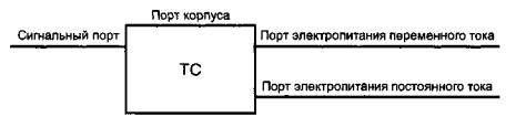 Рисунок 1 - Примеры портов ТС 3.2 порт корпуса: Физическая граница ТС, через которую могут излучаться создаваемые ТС или проникать внешние электромагнитные поля. 3.3 порт подключения кабеля: Порт, в котором проводник или кабель подключается к ТС. Примечание - Примерами портов подключения кабеля являются сигнальные порты и порты электропитания. 3.4 сигнальный порт: Порт, в котором проводник или кабель, предназначенный для передачи сигнала, подключается к ТС. Примечание - Примерами сигнальных портов являются: аналоговые входы и выходы; порты подключения линий управления, шин передачи данных, сетей связи и т.д. 3.5 порт электропитания: Порт, в котором проводник или кабель, подающий электрическую энергию, необходимую для приведения в действие (функционирования) конкретного ТС или подключаемого к нему оборудования, подключается к ТС. 3.6 длинные линии: Линии, подключенные к сигнальным портам, длина которых в пределах здания более 30 м, а также выходящие за пределы здания (включая линии, подключаемые к электрическим установкам, расположенным вне зданий). 4 Критерии качества функционированияМногообразие и различия между ТС, на которые распространяется настоящий стандарт, затрудняют установление точных критериев оценки результатов испытаний ТС на устойчивость к помехам. Если в результате испытаний на помехоустойчивость, регламентированных в настоящем стандарте, ТС становится опасным или ненадежным, данное ТС считают не соответствующим требованиям настоящего стандарта. Описания выполняемых функций, а также критериев качества функционирования ТС при испытаниях на помехоустойчивость во время воздействия или после прекращения воздействия помехи должны быть установлены изготовителем ТС и отражены в протоколе каждого испытания в соответствии с таблицами 1-4 на основе следующих критериев качества функционирования А-С: а) Критерий качества функционирования А. Во время воздействия и после прекращения воздействия помехи ТС должно продолжать функционировать в соответствии с назначением. Не допускается ухудшение качества функционирования ТС в сравнении с уровнем качества функционирования, установленным изготовителем применительно к использованию ТС в соответствии с назначением, или прекращение выполнения функции ТС. Минимальный уровень качества функционирования ТС может быть заменен допустимым ухудшением качества функционирования. Если минимальный уровень качества функционирования или допустимое ухудшение качества функционирования не установлены изготовителем, они могут быть определены на основе анализа эксплуатационных и технических документов на ТС конкретных видов или исходя из результатов применения ТС в соответствии с назначением. б) Критерий качества функционирования В. После прекращения воздействия помехи ТС должно продолжать функционировать в соответствии с назначением. Не допускается ухудшение качества функционирования ТС в сравнении с уровнем качества функционирования, установленным изготовителем применительно к использованию ТС в соответствии с назначением, или прекращение выполнения функции ТС. Минимальный уровень качества функционирования ТС может быть заменен допустимым ухудшением качества функционирования. В период воздействия помехи допускается ухудшение рабочих характеристик ТС. При этом 
