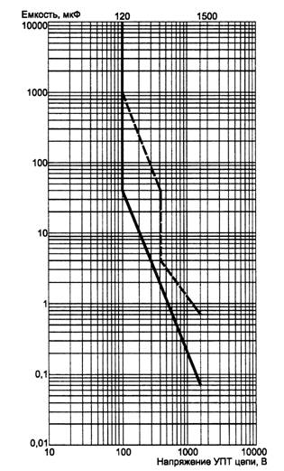 Обозначения: Примечание - Дополнительные требования - по А.5.3 (приложение А). Рисунок 2 - Предельные значения для значения емкости УПТ цепи или полной системы Приложение