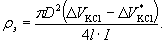 где F - площадь поперечного сечения бетонного образца, см2; ΔV - разность потенциалов между средними электродами после включения тока, В; ΔV0 - разность потенциалов в отсутствие тока, В; I - ток в электрической цепи установки, А; l - расстояние между средними электродами в образце, см. Площадь поперечного сечения образца F, см2, равна F = b·h, (10) где b и h - ширина и высота поперечного сечения бетонного образца, см. 7.5.2 Удельное электрическое сопротивление ρвв водной вытяжки рассчитывают по формуле
