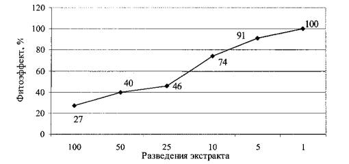 Рис. 2. Динамика фитоэффекта в зависимости от разведения экстракта отхода