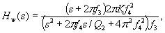 где s = j2pf - переменная преобразования Лапласа. Полосовой фильтр может быть реализован в виде двухполюсного фильтра. Весовой фильтр определяется передаточной функцией Hw(s):