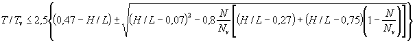 где N0 - величина вертикальной нагрузки, воспринимаемая опорным сечением балки, заармированным согласно требованиям п.п. 4.3.6-4.3.10 без учета растягивающей силы; L - пролет балки. Применение формулы (4.4) допустимо при 0,07 ≤ H/L ≤ 047 При N/Nv = 1 из формулы (4.4) следует: T/Tv ≤ 5(0,47 - H/L). (4.5) При отношении высоты ригеля к длине, равном Н/L = 1/2,5 и H/L = 1/6, допустимо определять прочность ригеля по графикам на рис. 16. Рис. 15. Армирование балок и стен при малом шаге колонн
