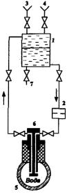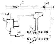где Жисх. и Жп.о. – жесткость общая воды до опыта и после опыта соответственно. 9.2.3.2.2.5. Фосфонат считается достаточно эффективным при величине Э не менее 95%. 9.3. Рекомендации по аппаратуре для проведения испытаний9.3.1. Для испытаний с непосредственным определением интенсивности накипеобразования в условиях систем теплоснабжения может применяться стенд, приведенный на рис. 10.
