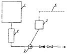 1 – расходный бак раствора реагента; 2 – насос; 3 – блок управления; 4 – фильтр; 5 – сигнал штатных насосов Рис. 18. Принципиальная схема частично автоматизированной установки дозирования с насосом-дозатором. 11.1.3. Упрощенная схема с эжектором (рис. 19). Эжектор устанавливается на байпасе штатного насоса. Регулирование расхода может осуществляться регулирующим клапанам на линии подачи воды к эжектору или на линии подачи раствора к эжектору.