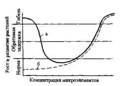 Рис. 2. Воздействие микроэлементов нарост и развитие растений: а - жизненно необходимые микроэлементы; б - микроэлементы, не имеющие жизненно важного значения Наиболее загрязненными, как правило, являются городские почвы. Например, в Москве, в районе Фрунзенской набережной, содержание Рb в почве составляет около 900 мг/кг, в то время как в начале текущего столетия его концентрация в столичных почвах равнялась всего лишь 6 мг/кг (территория Лесной опытной дачи Московской сельскохозяйственной академии) [7]. Учитывая агрессивные условия среды на придорожной территории, необходимо по возможности снижать интенсивность миграции загрязнителей в экосистеме, локализовав их в почвенной среде. Это может быть достигнуто увеличением буферной способности почвы. Для сохранения жизнеспособности экосистемы в целом необходимо также улучшать почвенное плодородие. Обе цели могут быть достигнуты внесением органических и минеральных удобрений, известкованием, регуляцией водного и воздушного режима почвы. Однако свойства почвы существенно меняются в зависимости от природно-климатической зоны, следовательно, меняются и экологические характеристики почвенной среды, а вместе с ними и методы их улучшения. Таким образом, знание состава почвы, ее свойств и происходящих в ней физико-химических, химических и биологических процессов важно для понимания устойчивости придорожной экосистемы в целом. В связи с этим необходимо более подробно рассмотреть некоторые характеристики и отличительные особенности различных типов почв. Важная экологическая характеристика почвы - механический состав. Он характеризует ее плодородие и устойчивость к антропогенному воздействию. От механического состава почв зависит ее плотность, порозность, влагоемкость, водопроницаемость, водоподъемная способность, воздушный и тепловой режимы и другие, а также технологические особенности почвы (твердость, липкость, крошение пласта при вспашке). Знание механического состава почв необходимо для решения вопросов, связанных с созданием защитного озеленения (подбором почвообрабатывающих орудий, размещением культур, определением глубины внесения семян и удобрений, установлением сроков и способов полива). В каждой почве содержится несколько механических фракций: «физический песок» - частицы крупнее 0,01 мм; «физическая глина» - частицы мельче 0,01 мм. Все частицы крупнее 1 мм называют скелетной частью почвы, а мельче 1 мм -мелкоземом. В зависимости от соотношения разных фракций выделяют почвы различного механического состава (табл. 1) [8]. Таблица 1Классификация почв и пород по механическому составу (по Н.А. Качинскому)
