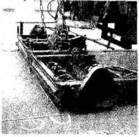 Рис. 11 Вид поверхности покрытия, закрепленного при помощи закупорочного слоя из ЛЭСМ после двух лет эксплуатации За рубежом смеси литой консистенции чаще всего готовят в мобильных установках на основе грузового автомобиля, на котором размещены емкости для минеральных материалов, эмульсии и ПАВ вместительностью, достаточной для укладки, как правило, 500-1000 м2 защитного слоя. Для распределения материала она оснащена набором прицепных распределителей, позволяющих производить укладку защитного слоя, заделку мелких дефектов поверхности покрытия, заполнение мелких трещин. В ряде случаев, когда установка предназначена преимущественно для укладки щебенистых слоев типа ms, машина снабжается приспособлением для предварительного увлажнения или подгрунтовки поверхности покрытия эмульсией (рис. 12). Готовая смесь должна иметь цвет от коричневого до черного. Схема мобильной установки для получения литых смесей с прицепным распределителем, позволяющим заделывать мелкие дефекты поверхности покрытия, приведена на рис. 13 [4].