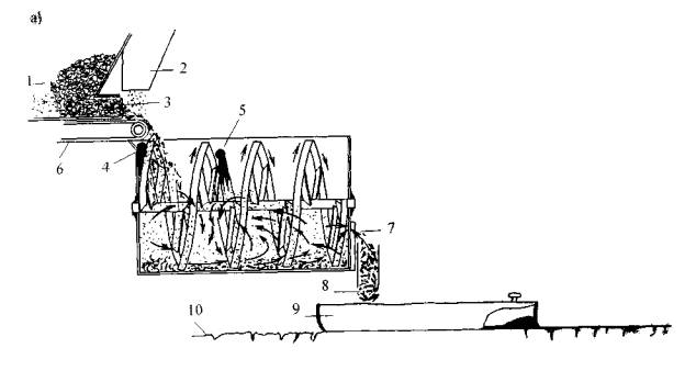 Продолжительность перемешивания обусловливается типом и составом смеси, свойствами и необходимой температурой нагрева минеральных материалов, особенностями конструкции установки в целом и отдельных ее узлов. Перемешивание предварительно отдозированных компонентов является основной операцией при приготовлении любой органоминеральной смеси. Для устройства защитных слоев и проведения других мероприятий по содержанию эксплуатируемых дорог все чаще используют мобильные передвижные или полустационарные установки. 5.2. МЕТОДЫ ПОЛУЧЕНИЯ И ПРИМЕНЕНИЯ НЕФТЕГРАВИЯ И ВОМСВОМС готовятся чаще всего на обычных АБЗ, дооборудованных приспособлениями для подачи и дозирования воды и активатора. Наиболее целесообразно объединять эти две линии подачи в одну, если в качестве активатора используется водная суспензия извести или цемента, так называемое «молочко». Эти смеси не расслаиваются при перевозках на любые расстояния различным транспортом. Допускается их длительное хранение в штабеле при соблюдении оговоренных в нормативных документах условий. Поэтому приготовление их централизованным способом в стационарных установках в отдельных регионах России считается наиболее эффективным и целесообразным [28]. Смесь такого же типа - нефтегравий - в Финляндии предпочитают готовить на установках полустационарного типа, которые ставятся в карьерах, где дробится минеральный материал - гравий или щебень. Схема такой установки показана на рис. 9 [6].
