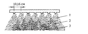 Рис. 15. Схема перекрытия струй вяжущего при розливе по высоте: 1 - без перекрытия струй; 2 - двойное перекрытие; 3 - тройное перекрытие Для приготовления и укладки таких смесей применяют оборудование непрерывного действия, если минеральные волокна и минеральный материал соединяются в необходимых соотношениях в процессе укладки непосредственно в асфальтоукладчике [5]. 5.6. ОСОБЕННОСТИ ФОРМИРОВАНИЯ ОРГАНОМИНЕРАЛЬНЫХ СМЕСЕЙ5.6.1. Тонкие и сверхтонкие слои из горячих смесей, не содержащих водуВ сверхтонких слоях и щебеночно-мастичных асфальтах предусмотрено применение большого количества асфальтового раствора, т.е. образуется толстая пленка вяжущего. При этом вяжущее используется более вязкое, количество щебеночной фракции повышается. Поэтому увеличиваются требования к адгезионным свойствам вяжущего. К моменту выхода горячей смеси из смесителя все физико-химические процессы взаимодействия ее компонентов, в основном, заканчиваются. Дальнейшее формирование структуры материала происходит, как правило, в процессе уплотнения. Этот процесс для тонких и сверхтонких слоев должен быть проведен в очень короткие сроки, так как смесь в таких слоях быстро остывает. Вследствие отсутствия термической инерции тонких слоев смесь уплотняют при более высоких температурах, чем обычные горячие асфальтобетонные смеси. Поэтому катки должны двигаться сразу за укладчиком. При назначении типов катков следует учитывать то, что они не должны раздавливать или вдавливать щебень в укатываемый слой, обеспечивая при этом необходимую шероховатость покрытия. Поскольку в России при уплотнении смесей типа БМО основным фактором, формирующим структуру слоя, является именно процесс уплотнения высокощебенистой смеси, ниже приведены принципы работы отечественных уплотняющих механизмов. Эти исследования были проведены Ленинградским филиалом Союздорнии в 1984 г. Для укатки тонких и сверхтонких слоев имеет большое значение тип применяемого катка. Российскими дорожниками, в основном, использовались два типа гладковальцовых катков - с формулой 2×2 и 2×3 (число осей х число вальцов). Пневмокатков было немного и не во всех дорожных хозяйствах, поэтому для укатки приходилось приспосабливать гладковальцовые катки. Хотя у катков с формулой 2×3 ширина уплотняемой полосы в 1,5 раза больше, чем у катков с формулой 2×2, но из-за того, что передний и задний вальцы идут не по одному следу, число проходов катка 2×3 по сравнению с катком 2×2 необходимо увеличивать в 2 раза. Поэтому в условиях ограниченного времени укатки тонких горячих слоев эти катки применять не рекомендуется. Кроме того, из-за меньшего диаметра переднего вальца и малой ширины задних вальцов эти катки не всегда обеспечивают необходимые эксплуатационные показатели покрытия (плотность, ровность, шероховатость и т.п.). По данным Ленинградского филиала Союздорнии, парк отечественных катков на 80% состоял из катков 2×3, на 6% из катков 2×2 и на 5% из катков 3×3. В настоящее время парк катков обновляется по сравнению с данными 1984 г. за счет увеличения доли пневмокатков, виброкатков и катков 2×2, в основном, иностранного производства, но во многих дорожных хозяйствах, особенно в провинции, по-прежнему доминируют катки 2×3. Тонкий многощебенистый слой ОМС характеризуется большой жесткостью, поэтому для его уплотнения необходи