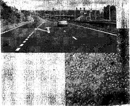 Рис. 20. Тонкий шероховатый слой из горячей асфальтобетонной смеси на автомобильной дороге Пекин-Лоян после двух лет эксплуатации: а - общий вид; б - текстура поверхности На федеральных дорогах Германии достаточно большой процент составляет движение грузовых автомобилей (около 50%). Вследствие этого преимущество получают тонкие и сверхтонкие го-???