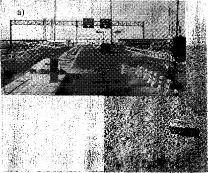 Рис. 4. Участок с цветным покрытием: а - общий вид; в - текстура поверхности В местах с ограниченной видимостью или с недостаточным освещением применяют более светлые цвета для обозначения направления движения или всей проезжей части. В небольших поселках, которые пересекает автомобильная дорога, также следует изменить цвет покрытия для привлечения внимания водителя на возможное появление на дороге пешеходов, животных и т.д. На взлетно-посадочных полосах аэродромов во Франции и Испании рекомендуется края выполнять из цветных ОМС предупреждающих цветов [17]. Традиционными материалами, применяемыми для устройства дорожных покрытий, обычно трудно обеспечить необходимую насыщенность и чистоту цвета из-за интенсивно темного (черного или коричневого) цвета вяжущего. Во Франции и Испании для этих целей рекомендуется использовать битумы прямой перегонки, полученные без применения мероприятий, обеспечивающих увеличение в их составе количества асфальтенов. Наиболее приемлемым считается битум с пониженным их количеством. Однако в местах, где цветные ОМС укладываются в эстетических целях или просто для визуального отделения отдельных поверхностей покрытия - обочин, мест стоянок и т.п., - обычно требования к яркости и насыщенности цвета снижены по сравнению с местами, где цвет должен предупреждать о наличии опасных участков. На этих участках возможно устройство цветных ОМС на традиционных вяжущих с добавлением пигментов и цветного щебня. В России цветные ОМС еще не нашли своего места в ряду дорожных материалов. Опытные участки на основе пастовых ЛЭМС с цветным покрытием были построены в нескольких областях России - для обозначения разметки - на белом минеральном материале и традиционном вяжущем - и в местах отдыха - для эстетических целей с красным и белым пигментом в качестве эмульгатора. Участки хорошо выделялись на фоне поверхности дорожного покрытия, были различимы при свете фар (разметка) и прослужили около двух лет. За рубежом - во Франции и Испании - возрастающая потребность повышения безопасности движения привела к разработке специальных составов вяжущего на основе светлых смол и синтетического вяжущего с добавлением пигментов и поверхностно-активных веществ (ПАВ). Однако высокая стоимость таких вяжущих очень ограничивала развитие рынка цветных ОМС. Производство качественных эмульсий на основе этих вяжущих позволило использовать методы и технологию сларри сил для получения цветных поверхностей, что способствовало значительному снижению стоимости цветных смесей, повышению производительности работ по устройству слоев. Расширению области применения цветных смесей способствовало также и решение многих технологических вопросов, например, создание и совершенствование мобильных установок для приготовления и укладки литых смесей типа сларри сил и ms (рис. 5).