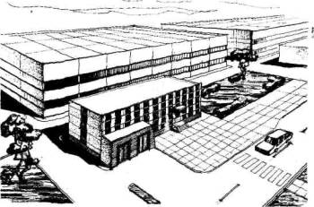 Рис. 4. Общий вид АБЗ автобазы минского метрополитена 2.14. Геометрические параметры вспомогательных зданий (этажность зданий и высота этажей) Определяются прежде всего соотношением сторон зданий в плане. Число этажей отдельно стоящих зданий не должно превышать девяти, включая технические этажи, а также цокольный этаж, если верх его перекрытия выше планировочной отметки земли на 2 м и более. Число этажей пристроек, к одно- и двухэтажным производственным зданиям, а также пристроек, вставок в эти здания, как правило, не должно превышать четырех, Общая высота пристроек, встроек и вставок не должна превышать высоту производственных зданий. 2.15. Для отдельно стоящих зданий, пристроек, встроек и вставок высоту этажей следует принимать равной 3 м - при размещении на этаже бытовых помещений, за исключением залов столовых, собраний и совещаний вместимостью более 75 мест (рис. 5), а также административных помещений цехового персонала управления.
