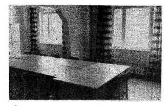 Рис. 7. Интерьер гардеробного блока АБЗ ПО "Прокатдеталь" (Москва) Гардеробные уличной одежды должны быть отдельными: при производственных процессах групп Iа, Iб и IIIа; на предприятиях, расположенных в I климатическом районе и подрайонах IIа и IIIа. При наличии специальных указаний в ведомственных нормах устройство отдельных, гардеробных уличной одежды допускается и в других случаях. 2.51. В гардеробных домашней и специальной одежды хранение домашней одежды должно предусматриваться в запираемых отделениях шкафов, а специальной - в открытых или запираемых. Открытое хранение спецодежды для III группы производственных процессов не допускается (за исключением переменного хранения в раздаточных). Для домашней одежды рекомендуется применять деревянные шкафы, а для спецодежды групп Iв, IIIб и IIIв - металлические. Количество отделений в шкафу принимается по списочному количеству работающих: для групп Iа, IIб и IIIв – по одному отделению, для остальных групп - по два отделения на одного работающего (согласно табл. 5 СНиП 2.09.04-87). 2.52. Размеры запираемых и открытых отделений шкафов должны быть: глубина - 50 см, высота - 165, ширина - по табл. 6 СНиП 2.09.04-87. В гардеробных должны предусматриваться скамьи шириной 30 см, располагаемые у шкафов по всей длине их рядов по обеим сторонам проходов. Расстояние между лицевыми поверхностями шкафов должно приниматься равным 2 м, а расстояние между лицевой поверхностью шкафа и стеной - не менее 1,2 м. 2.53. На производствах, где очистка или обезвреживание специальной одежды должно производиться после каждой смены, необходимо предусматривать раздаточные специальной одежды взамен гардеробных. Раздаточные специальной одежды должны состоять из отдельных помещений: для приема и временного хранения загрязненной одежды; для хранения и выдачи чистой одежды. Каждое из этих помещений должно иметь площадь для хранения и площадь для переодевания, разделенные барьером. Площади для хранения одежды должны приниматься из расчета 0,2 м2 на одного работающего в смену, пользующегося раздаточной. Площадь для хранения чистой спецодежды должна быть оборудована вешалками. 2.54. Помещение для переодевания должно оборудоваться скамьями шириной 30 см, над спинками скамей должны быть крючки для одежды. Расстояние между скамьями и между скамьей и барьером должно быть 1 м. Площадь для переодевания должна приниматься из расчета 0,1 м2 на одно место. 2.55. На производствах, где ежедневная очистка или обезвреживание одежды не требуется, при гардеробных специальной одежды должны предусматриваться кладовые, отдельные для чистой и загрязненной специальной одежды. Площадь кладовых должна составлять: при обычном составе одежды - 0,04 кг; при расширенном составе одежды - 0,06 м2 на одного работающего в смену, но не менее 5 м2. Необходимо проектировать перед каждой кладовой свободную площадь из расчета 0,02 м2 на одного человека в смену, шириной не менее 1 м. Чистую и загрязненную одежду можно хранить в отдельных шкафах при численности работающих, пользующихся гардеробной, не более 20 человек в смену. 2.56. Для хранения спецодежды необходимо предусматривать кладовые, оборудованные подъемниками, или с выходом из здания; они должны иметь дверные проемы с шириной, достаточной для провоза контейнеров. 2.57. Гардеробные уличной одежды должны размещаться в вестибюле бытового зда