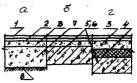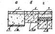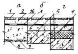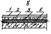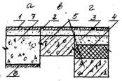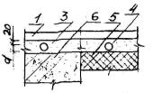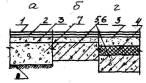Примечание: 1. а - по бетонному подстилающему слою плитам перекрытий или стяжке: б - по сплошному тепло - или звукоизоляционному слою на перекрытии. 2. Прочность керамзитобетона и керамзитоперлитового бетона на изгиб для стяжек С-2, С-3, С-7, С-8, С-9, укладываемых по теплоизоляционному слою из материалов групп А и Б (табл. 4), не должна быть менее 2,0 MПa (20 кгс/cм2). 3. Стяжки полов C-1б... С-3б и С-7 ... С-9 допускаются при сосредоточенных нагрузках на пол не более 2 кН (200 кгс). 3.30. Звукоизоляционный слой. Для улучшения звукоизоляции помещения применяют как засыпки из сыпучих материалов, так и упругие прокладки, отделяющие пол от перекрытия. Для звукоизоляционных засыпок стяжки следует применять минеральные сыпучие материалы (песок, каменно-угольный шлак, керамзит, вермикулит и др.) с зернами крупностью не более 10 мм. Под сборные стяжки следует применять упругие прокладки из минераловатных и стекловолокнистых матов и плит, а также древесноволокнистых изоляционных плит. Материал звукоизоляционного слоя и его толщину рекомендуется назначать в соответствии с табл. 4. 3.31. Гидроизоляционный слой. Гидроизоляция в полах предусматривается для предотвращения капиллярного поднятия грунтовых вод и проникания сточных вод. Гидроизоляцию от проникания сточных вод и других жидкостей следует предусматривать только при средней и большой интенсивности воздействия. Гидроизоляцию следует выполнять из рулонных материалов (изол, гидроизол, толь и др.), приклеиваемых на битумной мастике. При средней интенсивности воздействия жидкостей на пол следует применять оклеечную гидроизоляцию из слоев, а при большей интенсивности воздействия и под сточными лотками, каналами - из 4 слоев изола или гидроизола на битумной мастике. Поверх гидроизоляции следует предусматривать цементно-песчаные стяжки. При расположении в зоне опасного капиллярного поднятия грунтовых вод низа бетонного подстилающего слоя, используемого в помещениях, где отсутствует воздействие на пол сточных вод средней и большей интенсивности, следует применять гидроизоляцию от капиллярного поднятия грунтовых вод из пропитанного битумом слоя щебня толщиной 40-50 мм по грунту основания или из слоев изола, гидроизола на мастике по стяжке из бетона класса B12,5. Таблица 4.Толщина и плотность звукоизоляционных слоев, прокладок и засыпок
