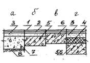 Примечания: 1. а - на грунте; б - на перекрытии по стяжке; в - по плите перекрытия; г - на перекрытии по стяжке, уложенной по тепло- или звукоизоляции; 2. Пролет лаг (расстояние между осями столбиков) должен составлять при толщине лог: 40 мм - 0,8-0,9 м; 50 мм - 1-1,1 м. Таблица 3.Стяжки