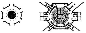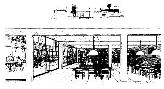 7.21. Одним из элементов архитектурно-пространственной организации подземных торгово-пешеходных зон является структура вертикальных связей с выше и нижележащими уровнями. Обеспечение удобных вертикальных связей позволяет содействовать созданию достаточно комфортных условий в подземных уровнях и обеспечить незаметный переход с наземного в подземный уровень. Так, в отечественной и особенно в зарубежной практике даже в пешеходных переходах простейшего типа и развитых в плане схем кроме лестниц устраиваются пандусы или эскалаторы, чаще работающие вверх. В торговых зданиях и комплексах для. обеспечения вертикальной связи, более удобной, чем горизонтальной, используются также и подъемники. Так, например, в торговом центре "Булл-Ринг" (в Бирмингеме) имеется 22 эскалатора и 40 лифтов; в подземные этажи торгового центра. "Элефант-энд-Касл"( б Лондоне) входы организованы по пандусам с уклоном 8%. 8. ПРИЕМЫ АРХИТЕКТУРНО-ХУДОЖЕСТВЕННЫХ РЕШЕНИЙ8.1. Структура подземных сооружений формируется с учетом специфических условий размещения этих объектов, лишенных естественного освещения и внешней пластики, имеющих только внутреннее пространство. Художественное решение этих сооружений осложнено необходимостью создания экстерьера в интерьере. Основная задача при формировании подземных комплексов обслуживания - средствами архитектурно-художественной выразительности оказать на человека положительное эмоциональное воздействие и в целом содействовать созданию благоприятной среды. 8.2. Обеспечение по возможности незаметного перехода с наземного в подземный уровень в зданиях и центрах достигается созданием общих наземно-подземных холлов с лестницами и эскалаторами, иногда освещенных через остекленные купола (Париж, универмаг "Прентан" - 8-этажный холл; Миннеаполис, торговый центр "Саусдейл" - двухсветный холл-зимний сад). Прием безоконного решения универмагов создает возможность проектирования искусственного однотипного освещения наземных и подземных этажей, что делает все этажи похожими (Стокгольм, универмаг "Оленс"; Тампере, универмаг "Войма"). 8.3. С помощью архитектурно-художественных средств может быть создана в подземном пространстве атмосфера оживленной торговой улицы, то есть привычной для человека обстановки. Размещение в сугубо утилитарных пешеходно-транспортных сооружениях киосков, магазинов, кафе и, главное, их художественное оформление и реклама позволяют преодолеть ощущение замкнутости пространства. Стены этих объектов обслуживания делаются легкими, остекленными, отчего зона пешеходного движения зрительно расширяется. Даже в тех переходах, где нет предприятий обслуживания, целесообразно устраивать витрины: встроенные, ритмично повторяющиеся (Белград, пл. Теразии), ленточные. (Вена, пл. Беллария). 8.4. Наиболее эффективным приемом, позволяющим обеспечить частично естественное освещение и вентиляцию, но в основном возможность пространственной ориентации, является создание световых двориков. Вокруг световых двориков концентрируются магазины, кафе и другие предприятия обслуживания, часто создаются площадки отдыха (Монреаль, пл. Виль-Мари; Будапешт, пл. Барош). Форма светового проема в перекрытии может быть различной: кругло-эллиптической (Вена, пл. Шоттентор - размер проема 35×60 м; Будапешт, пл. Барош - около 50 м); прямоугол