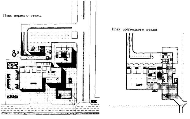 где ∑∆Эподз - дополнительный эффект от строительства предприятий торговли, общественного питания и бытового обслуживания при подземных пешеходных зонах, руб.; ∑∆Кподз - дополнительные капитальные вложения в строительство предприятий торговли, общественного питания и бытового обслуживания при подземных пешеходных зонах, руб. Дополнительный эффект от строительства предприятий торгово-бытового обслуживания при подземных пешеходных зонах слагается из стоимостной оценки экономии времени населением при посещении торгово-бытовых предприятий и прироста дохода этих предприятий и может быть определен по формуле ∑∆Эподз = ∑(∆tподзР + ∆Дподз). (3) где ∆tпoдзР - стоимостная оценка экономии времени населением, руб./год; ∆Дподз - прирост дохода, руб./год. Прирост дохода предприятий торгово-бытового обслуживания по варианту подземного строительства по сравнению с доходом этих предприятий по варианту наземного строительства следует определять по формуле ∆Дподз = Дподз - (Дназ + Муч), (4) где Mуч - ежегодная плата за земельные участки предприятий торгово-бытового обслуживания по наземному варианту строительства, руб./год. Дополнительные капитальные вложения в строительство предприятий торгово-бытового обслуживания при подземных пешеходных зонах по сравнению с вариантом капитальных вложений в наземное строительство этих предприятий следует определять с учетом единовременной платы за земельные участки по формуле ∑∆Кподз = Кподз - (Кназ + Куч), (5) где Кподз, Кназ - капитальные вложения в строительство предприятии торгово-бытового обслуживания соответственно по подземному и наземному вариантам строительства, руб.; Куч - единовременная плата за земельные участки предприятий торговли., общественного питания и бытового обслуживания по варианту наземного строительства, руб. ПриложениеПРИМЕРЫ ПРОЕКТНЫХ РЕШЕНИЙ ПОДЗЕМНЫХ ТОРГОВО-ПЕШЕХОДНЫХ ЗОН
