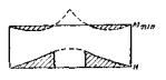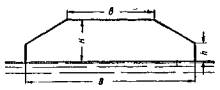 Примечания: 1. Если мост, сооружаемый на судоходной реке при наличии лесосплава, имеет только один судоходный пролет, то размеры его габаритов должны приниматься как для пролета низового направления движения 2. Ширина габаритов B и b, а также высота габарита h для временных мостов на водных путях I, II, III и IV классов настоящими нормами не устанавливаются, а назначаются проектной организацией и согласовываются: а) для водных путей I, II и III классов - с Министерством речного флота; б) для водных путей VII класса с местными органами Министерства речного флота и управлениями по транспортному освоению малых рек при советах министров союзных республик и лесосплавными организациями Министерства лесной промышленности СССР. 3. Высота габарита H на водных путях I и II классов устанавливается по согласованию с Военно-Морским Министерством. * По согласованию с Министерством речного флота и Военно-морским министерством допускается снижение высоты габарита H: на путях II класса - до 10 м, а на путях IV класса до 7 м. ** По согласованию с Министерством речного флота и управлениями по транспортному освоению малых рек при советах министров союзных республик и отдельных случаях в зависимости от размеров лесосплава допускается уменьшение ширины габарита B на путях VI класса до 30 м. *** По согласованию с Министерством речного флота и управлениями по транспортному освоению малых рек при советах министров союзных республик для деревянных мостов на путях VII класса допускается уменьшение ширины габарита B до 9,0 м. **** По согласованию с Министерством лесной промышленности СССР на реках с молевым сплавом, относимых при назначении подмостовых габаритов к водным путям VII класса, допускается уменьшение ширины габарита B до 10 м. ***** По согласованию с Министерством лесной промышленности СССР для всех временных и постоянных мостов на водных путях VII класса, используемых только для молевого сплава, допускается снижение высоты габарита H до 1,5 м. Ширина габарита B моста через судоходный канал может быть менее указанной в табл. 233 при условии, что пролет моста перекрывает ширину канала и ширину бечевников для береговой тяги. В мостах с разводным пролетом, предназначенным для пропуска только судов большой высоты, достаточно устройства одного разводного пролета, ширина габарита которого B (в метрах) принимается по табл. 235, причем на всей этой ширине должна быть обеспечена высота габарита H согласно табл. 233. Ширина габарита B выводного участка наплавного моста принимается по табл. 236. Если разводной пролет моста предназначен для пропуска буксируемых караванов и плотов, то должны быть соблюдены габариты, указанные в табл. 233. Для краткосрочных мостов (со сроком службы не более 1 года), а также при устройстве у мостов лесов и подмостей подмостовые габариты устанавливаются в каждом отдельном случае по согласованию с местными органами Министерства речного флота или управлениями по транспортному освоению рек при советах министров союзных республик, а для водных путей I и II классов - и с Военно-морским министерством. В несудоходных к несплавных пролетах судоходных и сплавных рек, а также на прочих реках и суходолах (для постоянных мостов) низ пролетных строений должен возвышаться над соответствующим горизонтом на величину, не менее указанной в табл. 234. Во всех случаях наивысший горизо