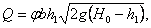 где ε, m, φ - коэффициенты сжатия, расхода и скорости водослива; b - ширина водосливного оголовка; h1 - глубина воды в туннеле на расстоянии около 5 h1 от входного сечения;