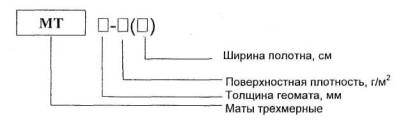 4.3 Пример обозначения: МТ 10-450 (300) - маты трехмерные, толщина материала 10 мм, поверхностная плотность материала 450 г/м2, ширина полотна 300 см. 5 Технические требования5.1 Геоматы должны соответствовать требованиям настоящего стандарта и изготавливаться по технологическому регламенту, утвержденному в установленном порядке. 5.2. Основные размеры и физико-механические показатели, геоматов должны соответствовать указанным в таблице А.1. 5.3 Геоматы выпускаются черного цвета с номинальной шириной полотна 300 см и длиной 50 метров. По согласованию с потребителем длина полотна в рулоне может быть изменена. 5.4 Сырьё и материалы, используемые для производства геоматов должны соответствовать нормативной документации завода-изготовителя (СТО, паспорту качества, сертификату соответствия). 5.5 Полотна геоматов должны поставляться плотно намотанными в рулоны. Торцы рулонов должны быть ровными. Допускаются выступы высотой не более 50 мм. В рулоне должно быть одно полотнище геомата, составные полотнища не допускаются. 5.6 По внешнему виду геомат должен соответствовать своему образцу-эталону. На полотне геомата не допускаются дыры площадью более 300 мм2, раздвижки шириной более 10 мм и длиной более 100 мм, затекания площадью более 300 мм2, посторонние включения. Участки брака отмечаются как условные вырезы и не учитываются в длине товарной продукции. 5.7 Геоматы должны быть устойчивы в средах с рН от 3 до 10 включительно, при этом остаточная разрывная нагрузка должна быть не менее 90 %. 5.8 Геоматы должны быть устойчивыми к воздействию плесневых грибов, показатель грибостойкости не выше ПГ113 по ГОСТ 9.049. 5.9 Геоматы должны быть гибкими и выдерживать изгиб на 180° без визуально наблюдаемого разрушения волокон при радиусе изгиба 10 мм и температуре - 5°С. 5.10 Геоматы должны быть морозоустойчивыми и выдерживать 25 циклов замораживания - оттаивания в дистиллированной воде (от -15 °С до +18 °С), при этом снижение разрывной нагрузки не должно превышать 10%. 5.11 Упаковка и маркировка 5.12 Рулоны геоматов упаковывают в полиэтиленовую пленку ГОСТ 10354, перевязывают шпагатом ГОСТ 17308 или упаковочным скотчем, другим перевязочным материалом. Упакованные в пленку рулоны устанавливаются в вертикальном положении в пакет-поддон или укладываются на поддон горизонтально, но не более 7 шт. по высоте. По согласованию с потребителем допускается другой способ упаковки не ухудшающий качество геоматов. 5.13 К каждому рулону геомата прикрепляют ярлык с указанием: - наименования предприятия изготовителя и (или) его товарного знака; - марки геомата; - номера партии; - количества метров в рулоне; - даты изготовления; - обозначения настоящего стандарта. 5.14 Срок службы геоматов 30 лет при условии выполнения требований изложенных в разделе «Указания по эксплуатации» настоящего стандарта. 6 Требования безопасности6.1 При изготовлении геоматов необходимо соблюдать требования безопасности, указанные в ГОСТ 12.3.030, ГОСТ 12.1.005, ГОСТ 12.1.044. 6.2 Геоматы в условиях хранения, монтажа и эксплуатации не выделяют в окружающую среду токсичных веществ и не оказывают при непосредственном контакте вредного влияния на организм человека. Работа с геоматами не требует особых мер предосторожности. 6.3 Геоматы относятся к группе «горючие» (сгораемые) по ГОСТ 12.1.044 и характеризуются следующими показателями: - группа горючести - Г4 по ГОС
