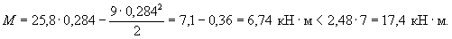 Плечо внутренней пары сил в опорном пластическом шарнире - zsI = h0I - 0,5xI = 172-0,5·12= 166 мм. Опорный момент в пластическом шарнире