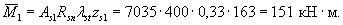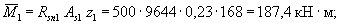 Плечо внутренней пары сил (формула 5.17) - zs1 = h01 - 0,5x1 = 167 - 0,5·7,2 = 163 мм. Пролетный момент (формула 5.21) при 400 МПа = 400 Н/мм2.