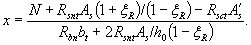 После пожара в охлажденном состоянии прогиб от неравномерного нагрева не учитывают. Тогда общий эксцентриситет по (5.34) равен е = 7,5·1,15 + 0,5(187 - 60) = 71,1 мм. Момент от расчетной нагрузки равен М = Ne = 8000·0,0711 = 569 кН·м. Высота сжатой зоны по (5.32) получилась больше граничной ξ > ξR, поэтому определяем высоту сжатой зоны по (5.33) при ξR > 0,493 (см. табл. 5.1)
