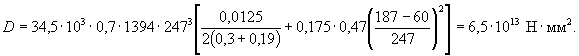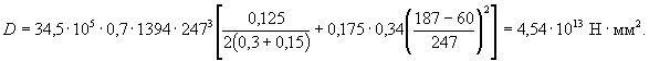 Определяем жесткость D по формуле (5.38). Для этого вычисляем: М1 = Мп + Nn·rt= 60 + 1700·0,19 = 417 кН·м. В связи с учетом в расчете огнестойкости только