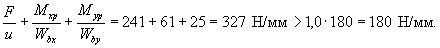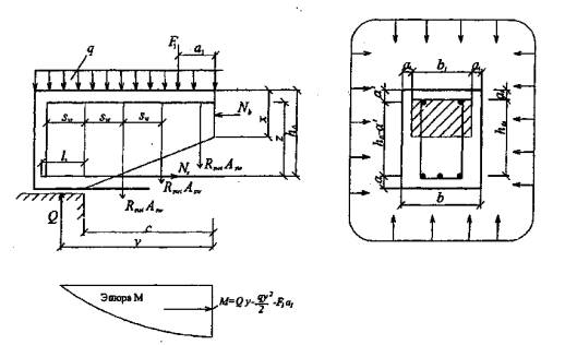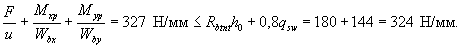 б) при действии изгибающего момента М и продольной сжимающей или растягивающей силы N: для элементов прямоугольного поперечного сечения по формуле